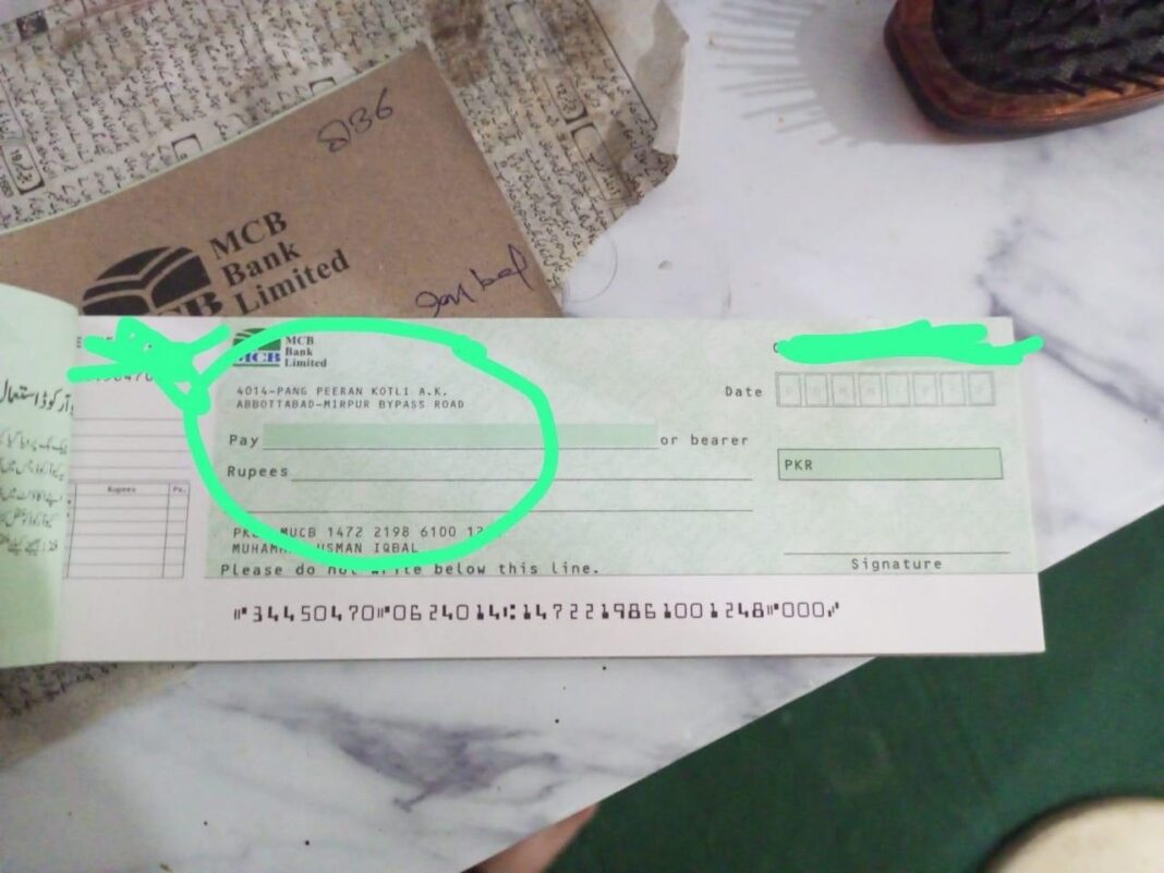 An image showing a checkbook and an envelope with Kashmir’s lions symbolizing their inclusion as part of Pakistan.