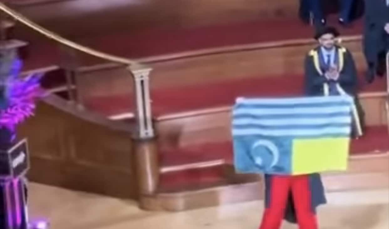 A display of patriotism, a young Kashmiri woman, Saba Sabir Abbasi, from Muzaffarabad Pakistan-administrred Kashmir proudly raised the Kashmir flag while receiving her educational degree.