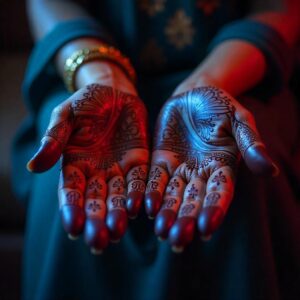 Symbolic Value: In many cultures, full hand mehndi symbolises joy, prosperity, and good fortune, particularly in wedding ceremonies.